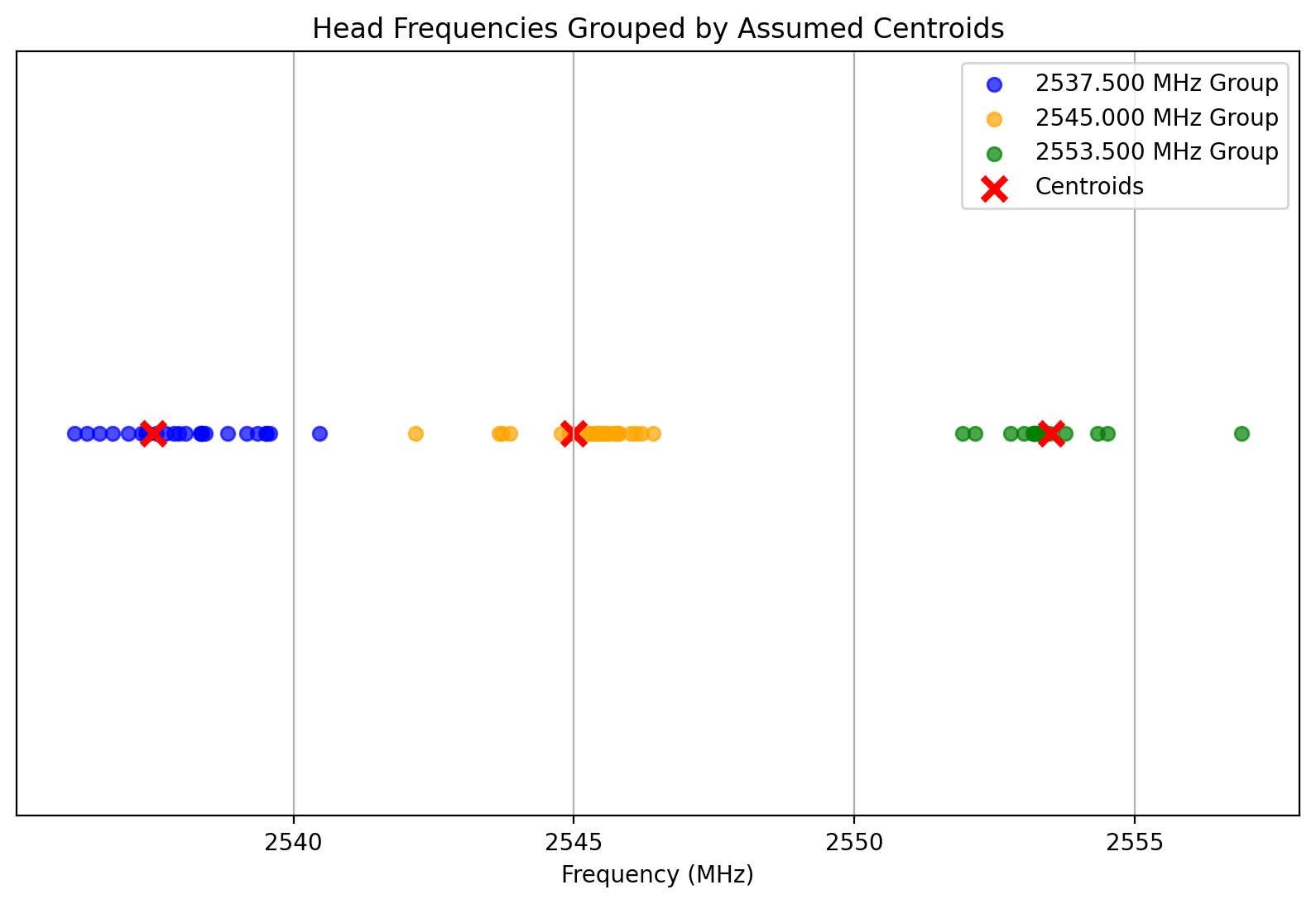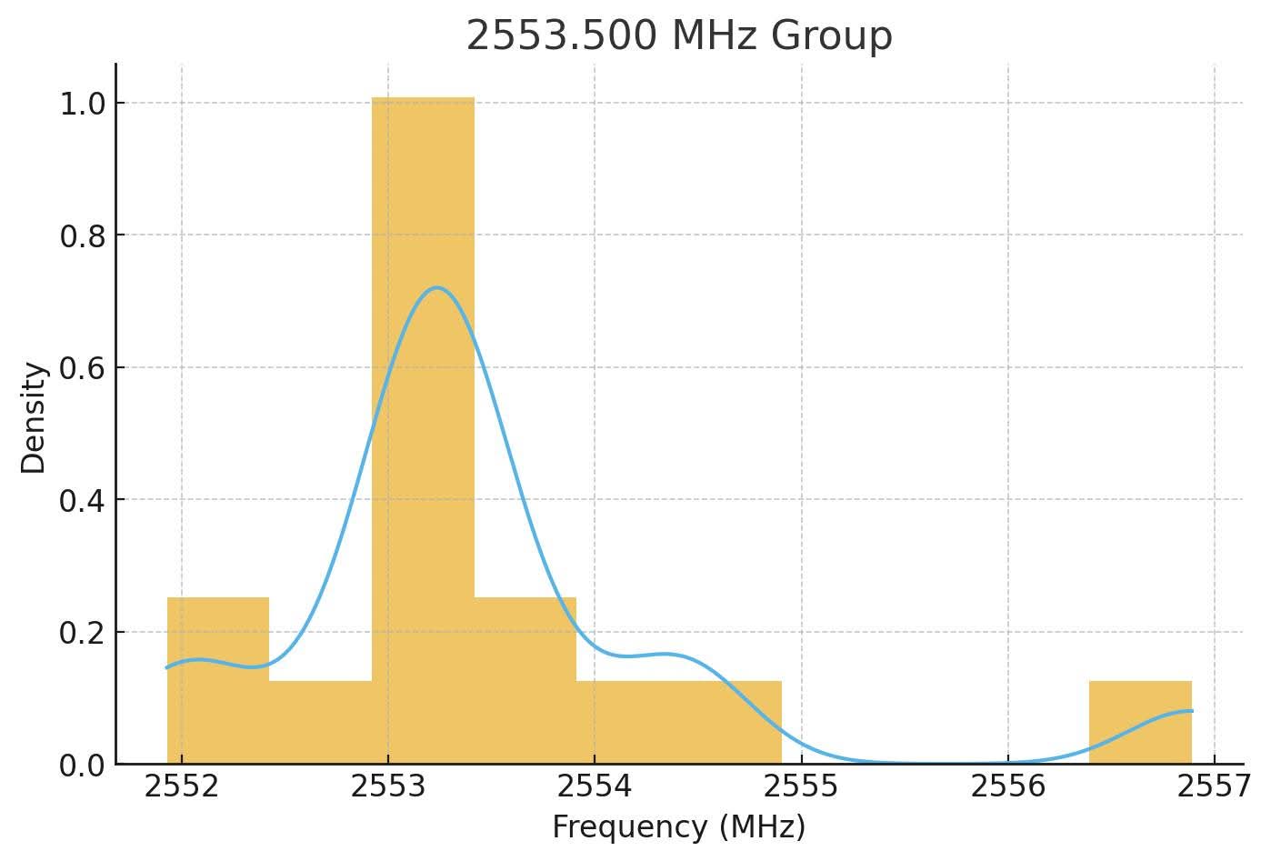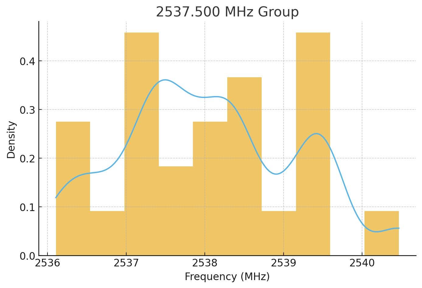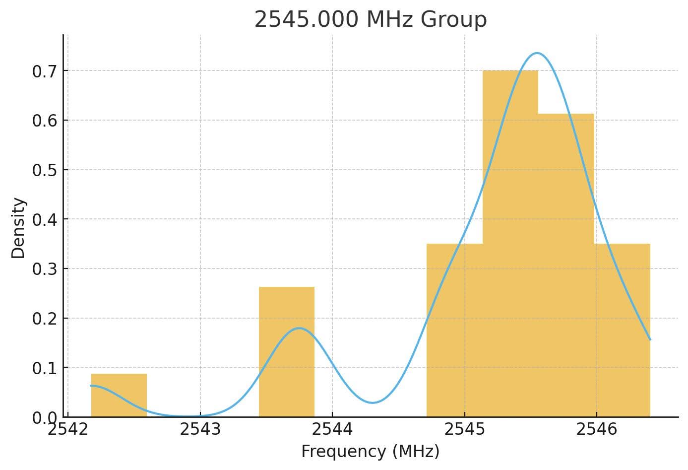 | Mean centre frequency (MHz) | 2538.04 | 2545.15 | 2553.58 | |