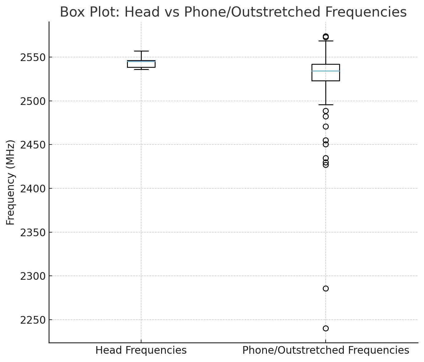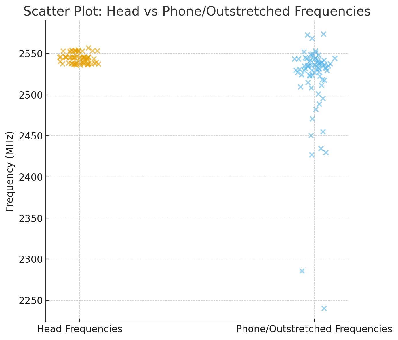 Reference (phone/hand) measurements across all sessions invariably show > 30 MHz and multi-modal distributions.