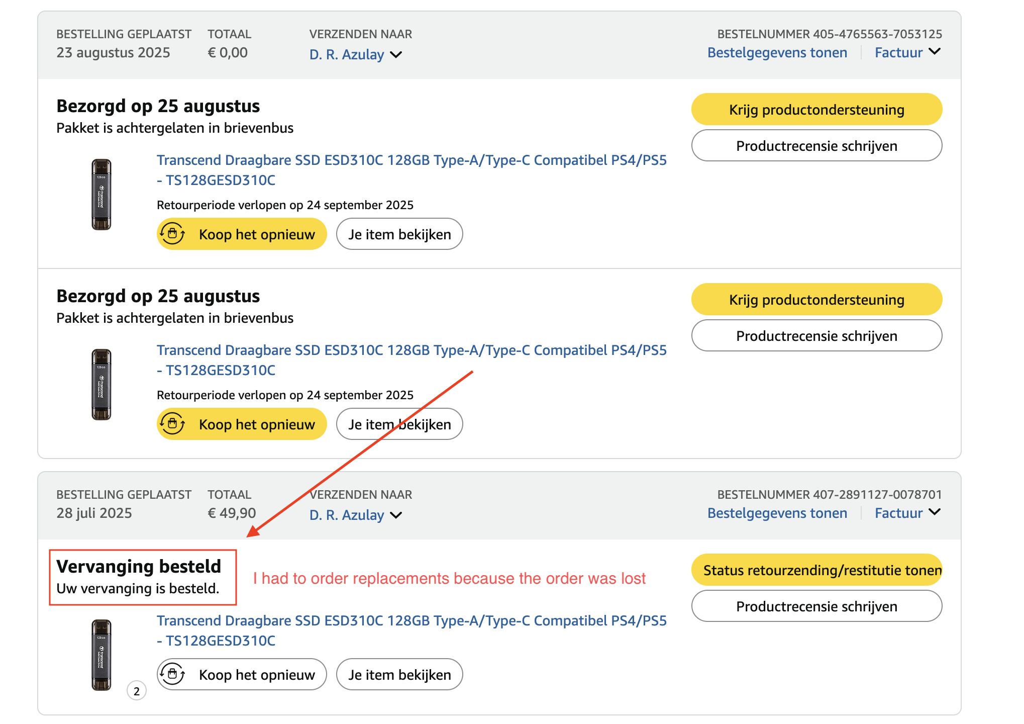 In September 2025, I was days away from flying to China to go to Russia with my evidence. I needed to buy two USB-sticks to store my material on, so I ordered 2 USB-sticks from Amazon.